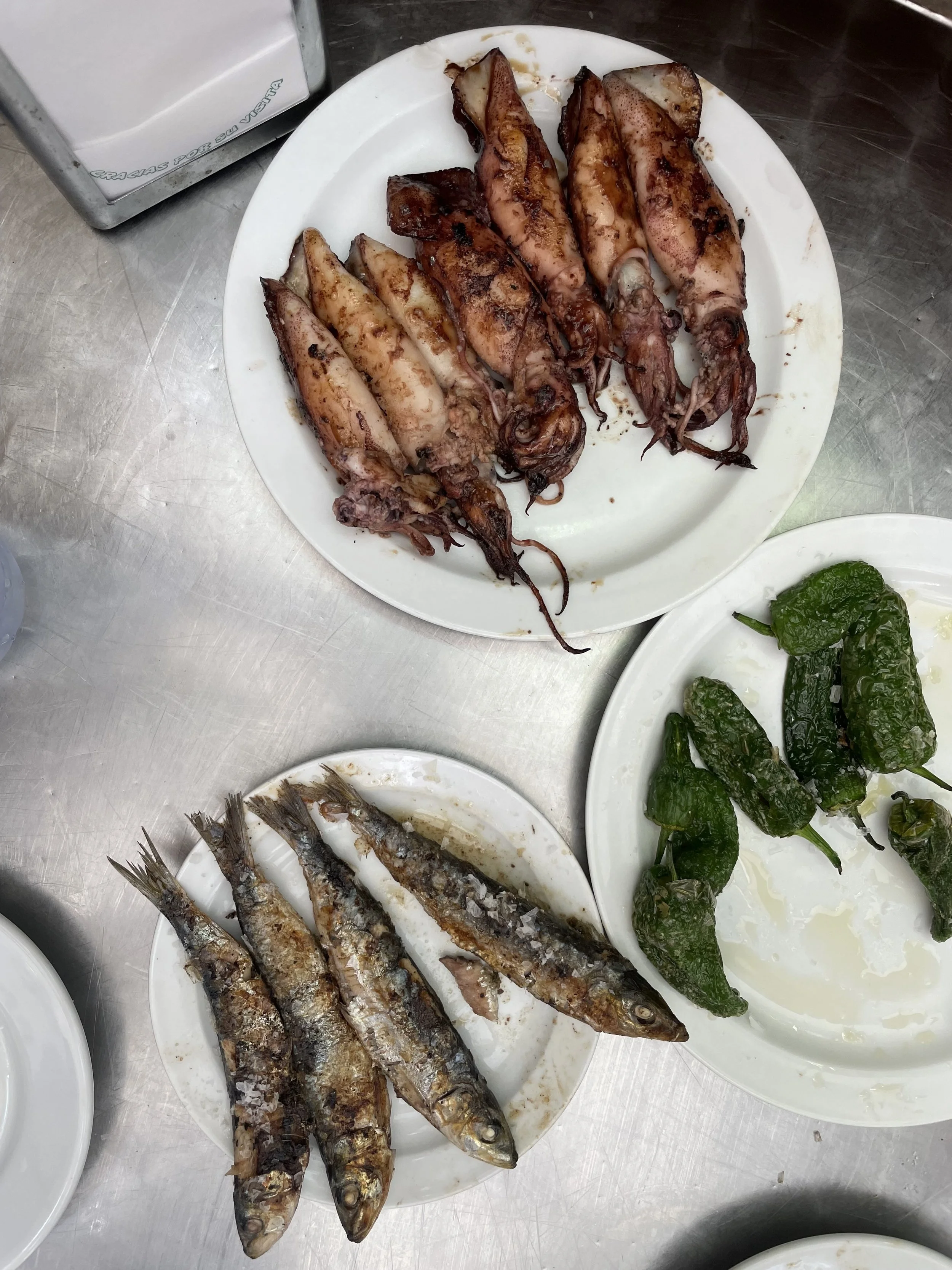 Bar Santurce lives not far from La Paloma and opened in 1970. Its famous sardinas a la plancha, or grilled sardines, are thick and sprinkled with salt flakes, leaving the mouth parched. Generally ordered with pimientos, there is little else on the menu. The place is small and operates only a few hours a day. A handful of tables, maybe ten or so, fill the floor, but remain empty save for one. Sizzles from the grill are the only music to be heard. It seems very little has changed since its debut, and there is a character about it that feels both unique and strangely familiar at the same time.