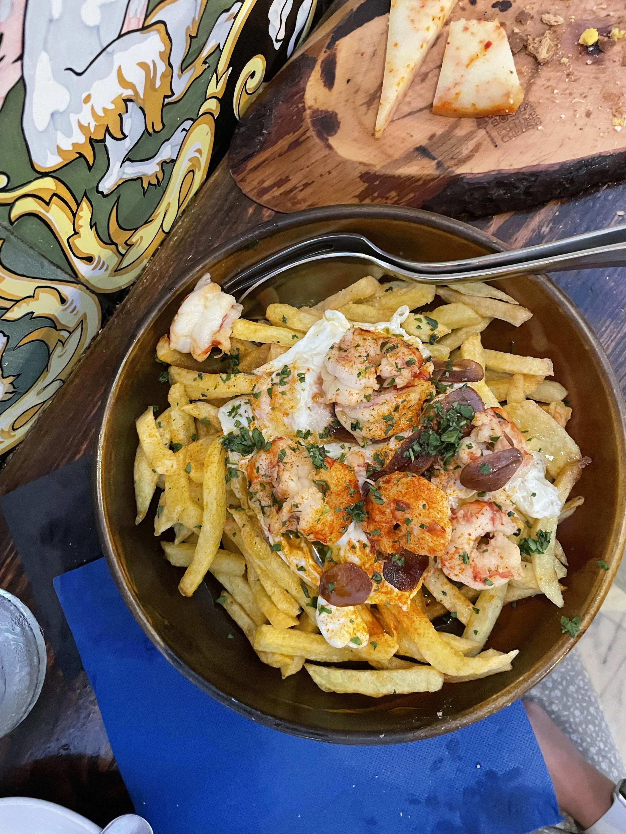 Tapas bars—tascas, or tabernas—are generally like this. There’s a template, a scaffolding, that seems to define them, and each place fills in the blanks with its own energy, or onda. Some feel more dated, rooted in time and tradition, but lively nonetheless. Others pander to tourists, dimly lit with narrower windows and employees that circle the sidewalk out front, summoning folks inside. For the most part, they share the bones of a similar menu: traditional tapas dishes. The word ‘tapa’ translates to ‘lid’ and comes from the verb tapar, which means ‘to cover.’ It’s said that tapas got their name from the early use of ham or cheese to cover drinks and keep dust or flies from entering. Legend has it that the custom began in the thirteenth century when King Alfonso X was prescribed high amounts of wine to treat an illness. To mitigate the effects of the alcohol, he ate small portions of food with each drink. The strategy’s success resulted in household recommendations to serve a bit of food along with alcoholic beverages.